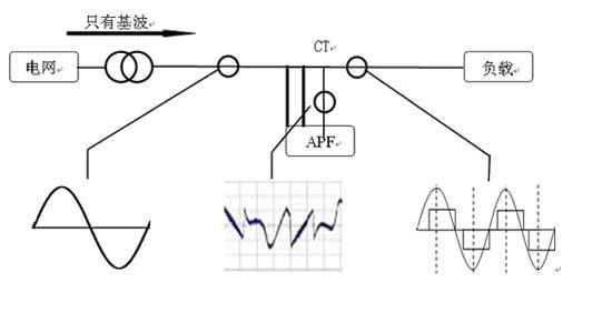 有源电力滤波器以并联方式接入电网,实时检测补偿对象的电压和电流,经指令电流运算单元计算,采用宽频脉冲调制信号变换技术驱动IGBT模块。向电网输入与电网谐波电流相位相反、大小相等的电流,两种谐波电流正好相互抵消,从而达到滤除谐波、动态补偿无功的功能,得到期望的电源电流。