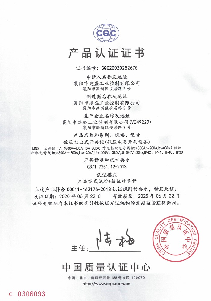 MNS低压成套开关设备CQC认证证书