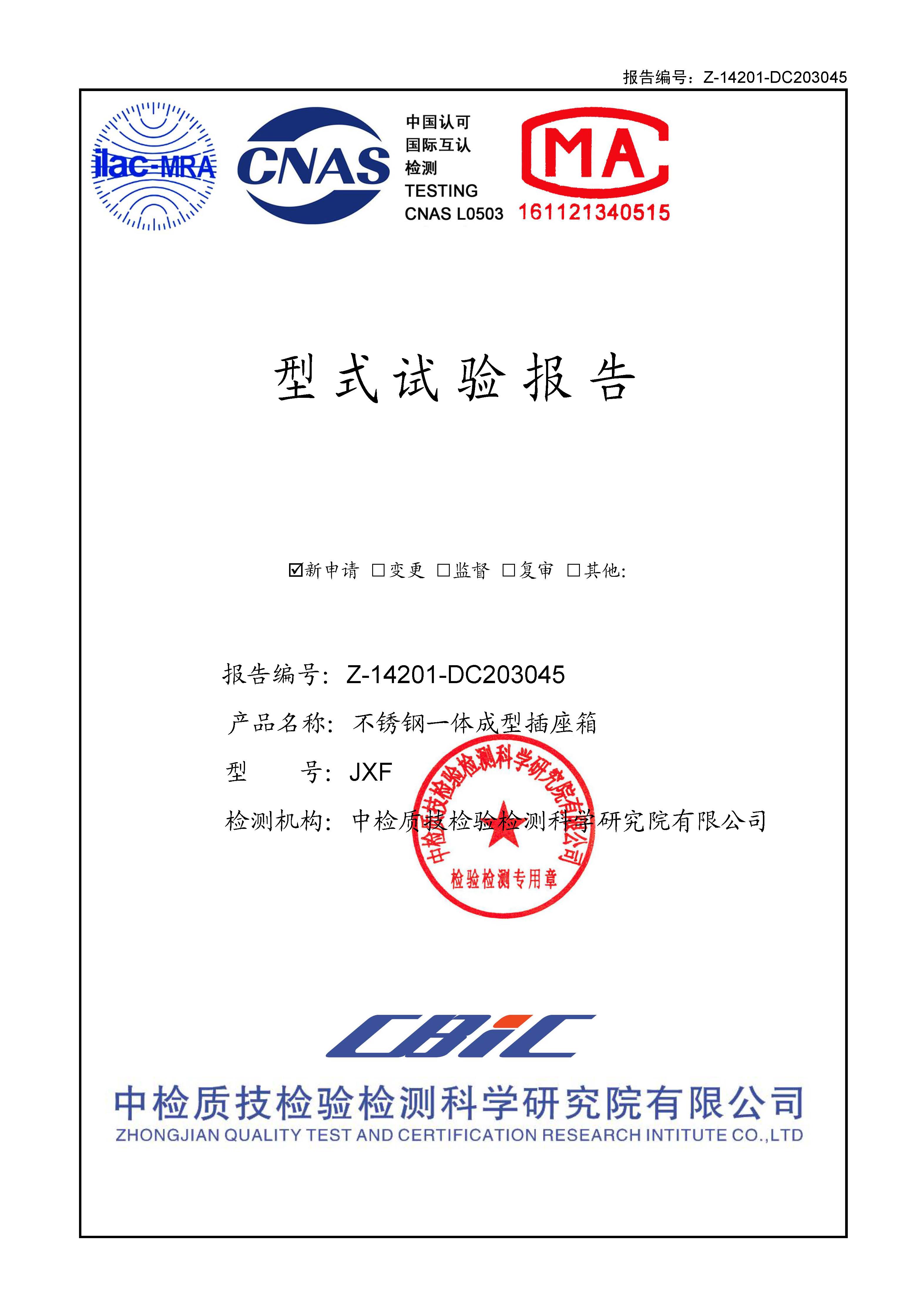 不锈钢一体成型插座箱 JXF 型式试验报告_01