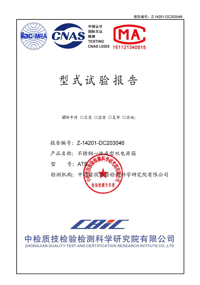 不锈钢一体成型双电源箱 ATS 型式试验报告_页面_01