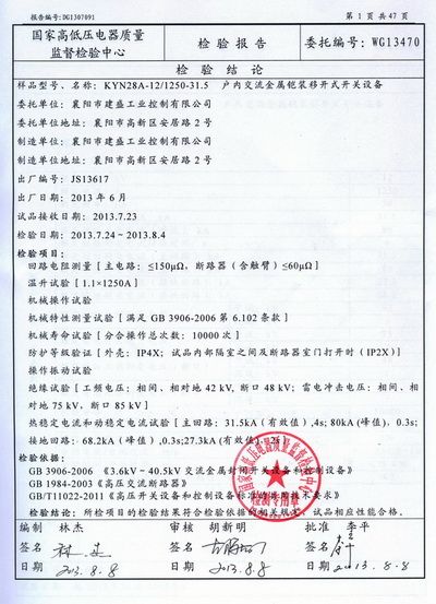 KYN28A-12型式试验报告2