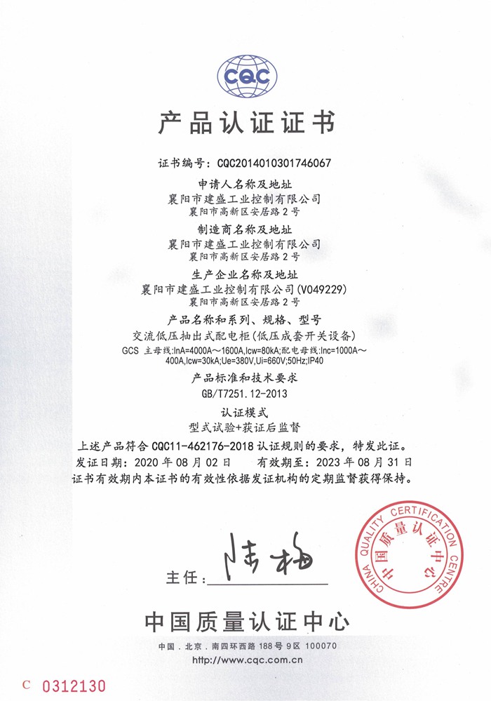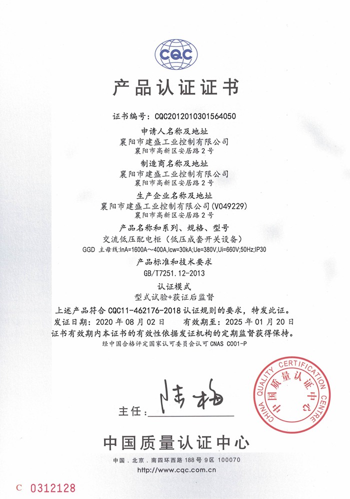 GGD低压配电柜CQC认证证书
